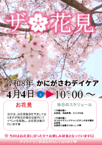デイケアのお花見は4/4(土)の10時~実施いたします🌷