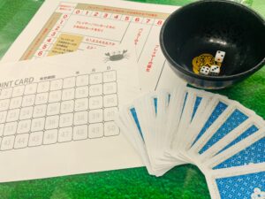 デイケアスタッフとデイケアメンバーさんでゲームを楽しみながら交流が出来たらな、という思いで始めました。初回はカードを使ったバカラ、サイコロを使ったチンチロリンを行ってみましたがメンバーさんもスタッフもついつい『あー!』『がんばれー!』など声が出てしまう展開となり、楽しい時間を過ごすことが出来ました(*^-^*)デイカジは月曜日の第2、第4週の午後に実施しておりますので是非いらして下さいね♪