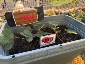 調べてみるとイチゴは適切な土壌や肥料が重要となっているらしく…! 土づくりの際も肥料の配分などみんなで計算しながら取り組み、普段より一層真剣に植え付け作業を行いました。そしてつい最近、小さな花が咲きました!春になるのが待ち遠しいです。